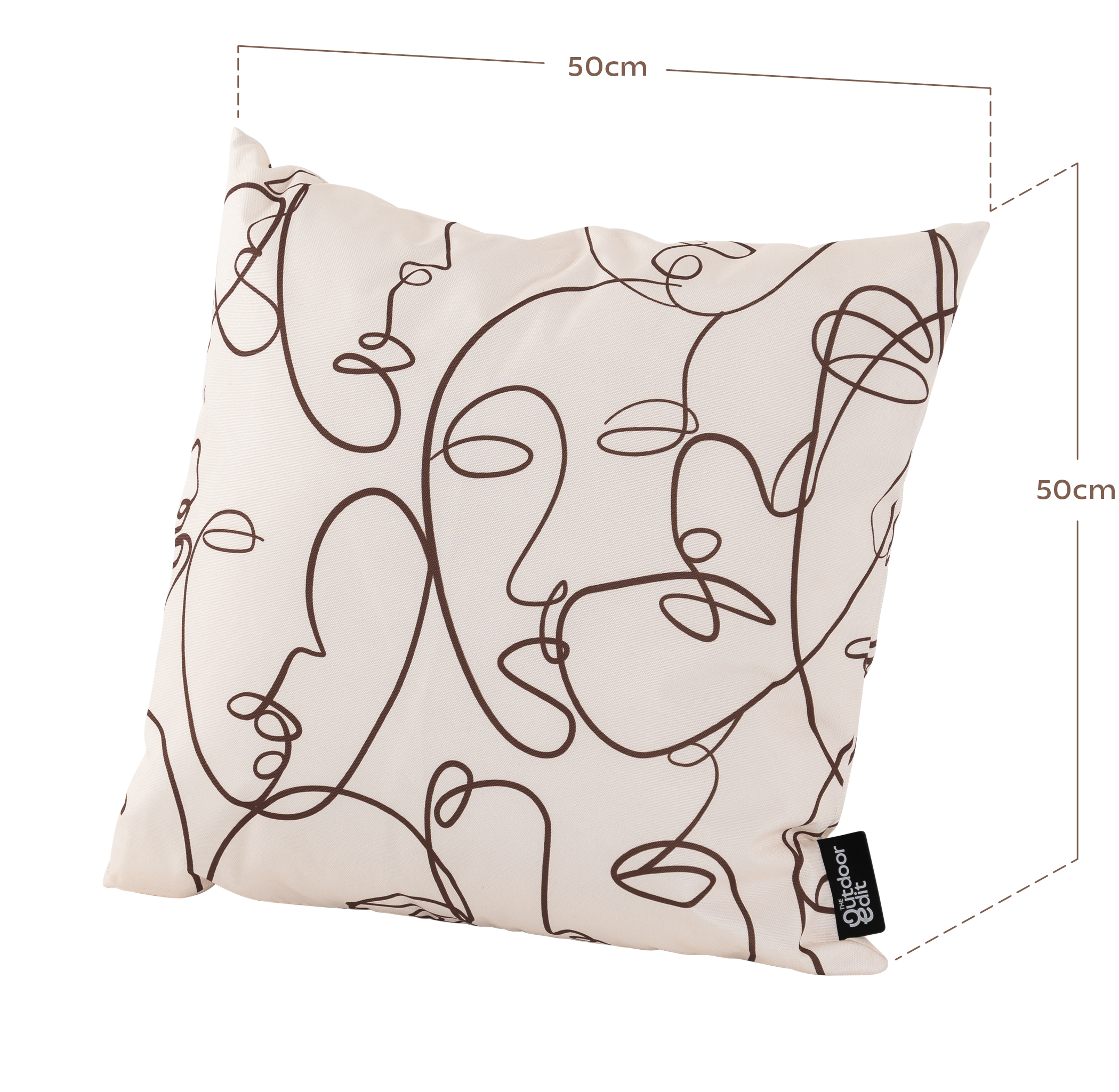 Add an artistic touch to your outdoor space with the Abstract Expressions Outdoor Cushion. A classic 50cm x 50cm square cushion featuring a cream background and delicate brown line drawings, blending modern design with a natural, earthy feel.