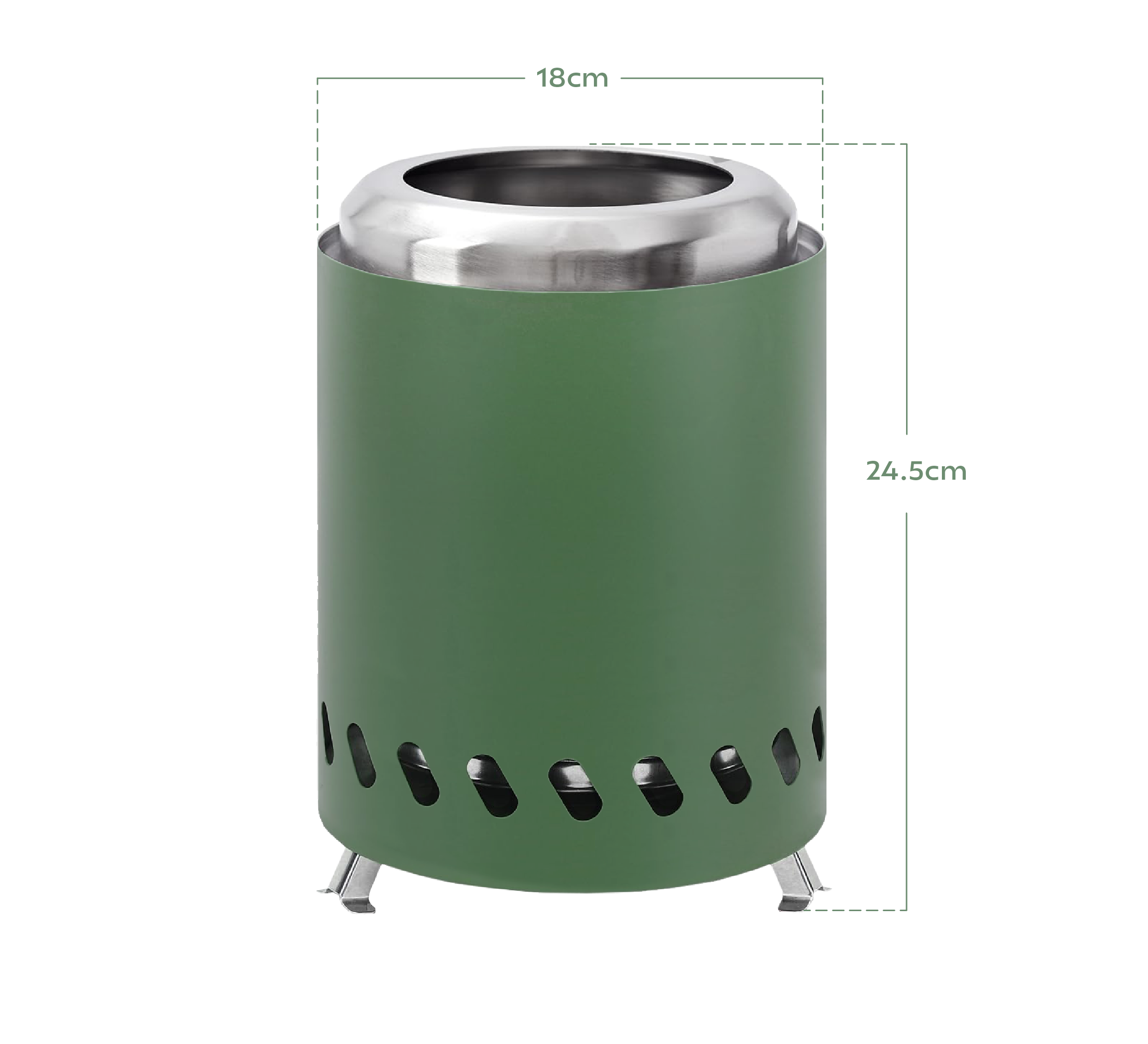 Enjoy the warmth of a fire without the smoke with The Blaze Fire Pit. Designed for outdoor spaces, this 18cm diameter firepit runs on wood pellets and features precision-cut airflow holes for a cleaner, more efficient burn. Available in olive or stainless steel, it’s both stylish and practical - perfect for cosy evenings in the garden or on a balcony. Your new favourite stylish, space-saving way to enjoy a warm and inviting outdoor atmosphere.