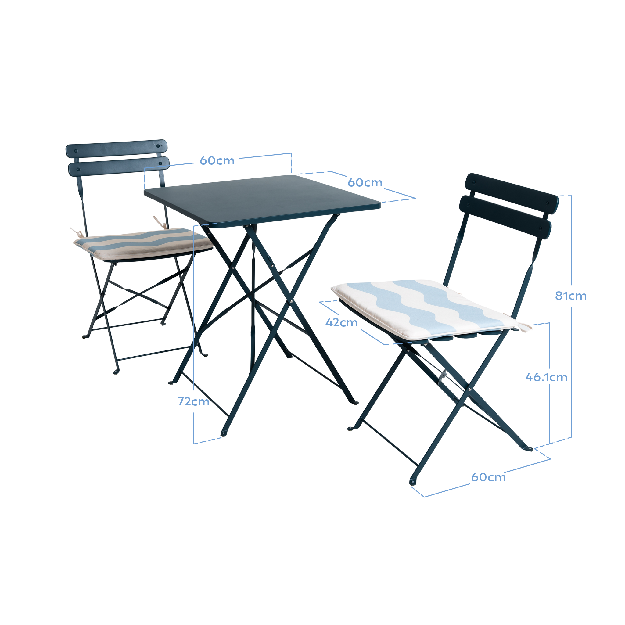 Part of the Sea and Sky edit, this timeless bistro set features a folding table and two folding chairs crafted from durable, powder-coated steel.